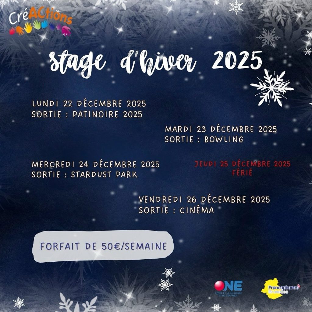 #StageHiver #CréACtions #Bruxelles #Stages2025 #Enfance #Jeunesse #ActivitésEnfants #VacancesDeNoël #AideScolaire #Parents #SortiesEnfants #WinterFun