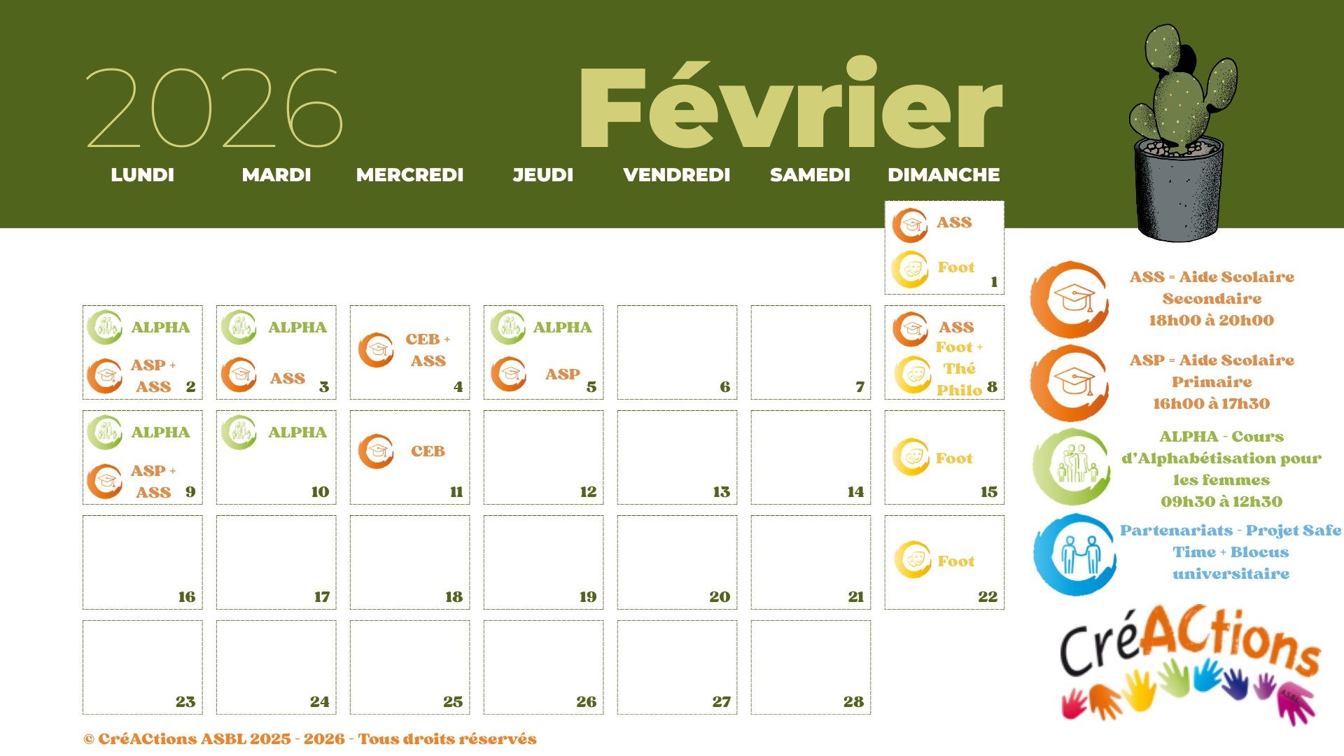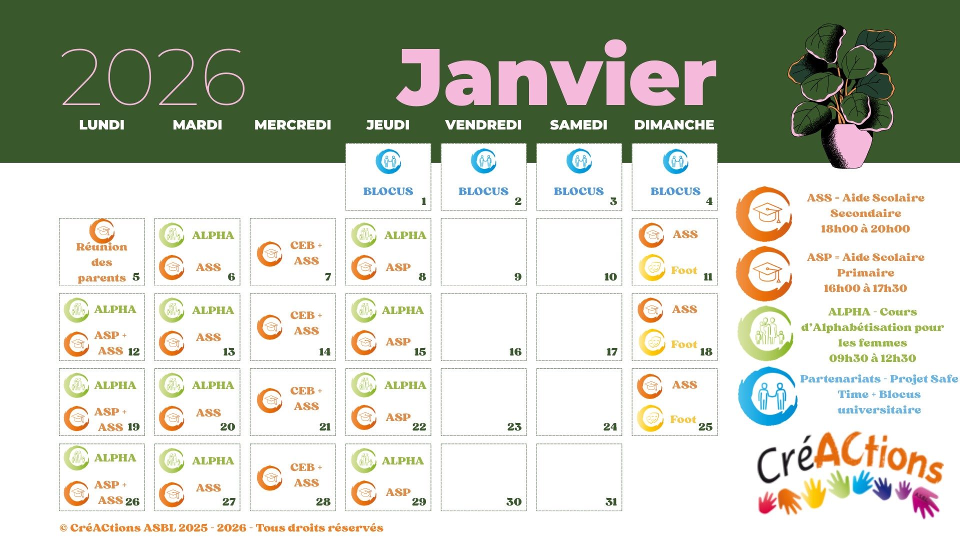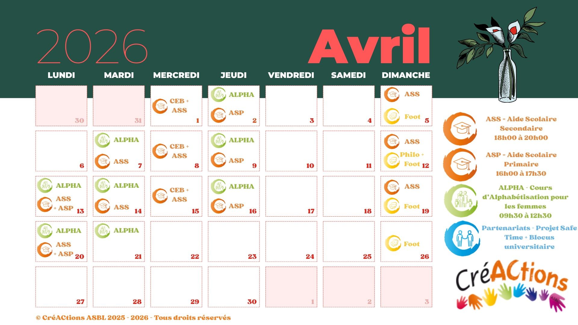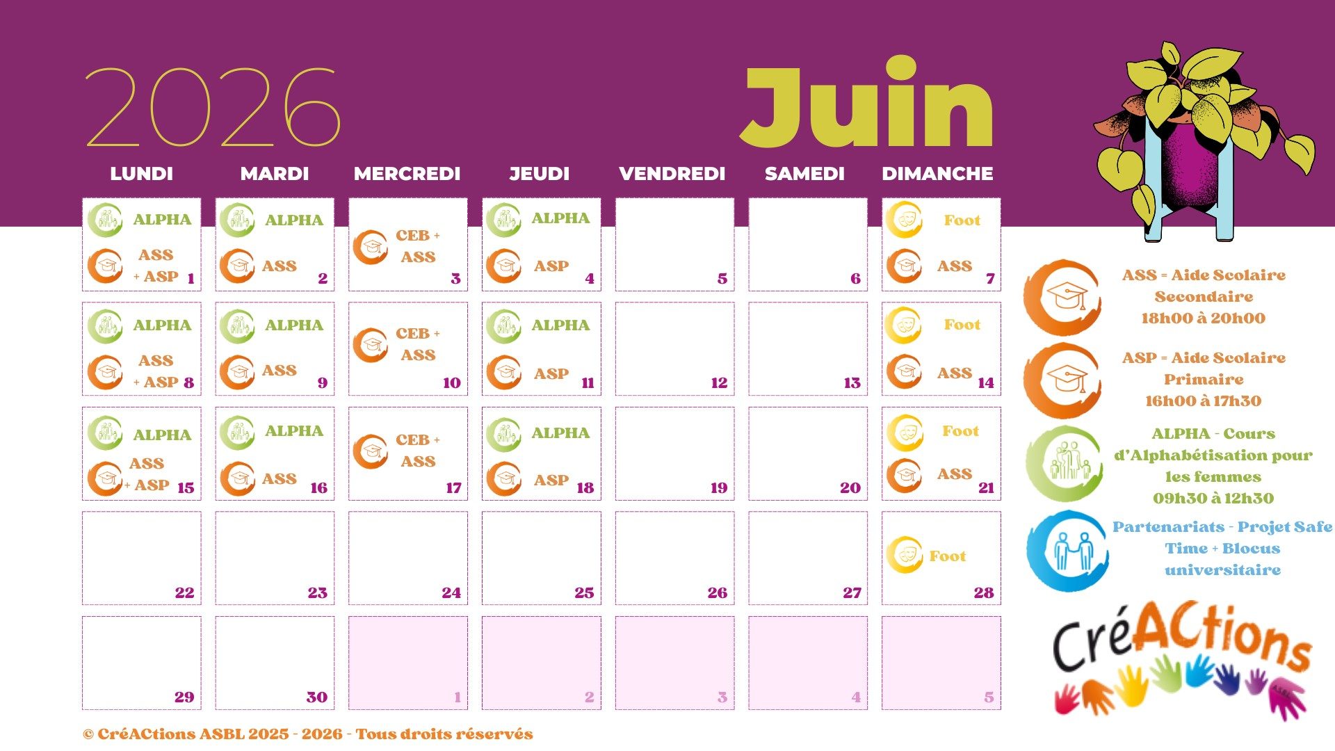 - Alpha : Cours d’Alphabétisation pour les femmes.