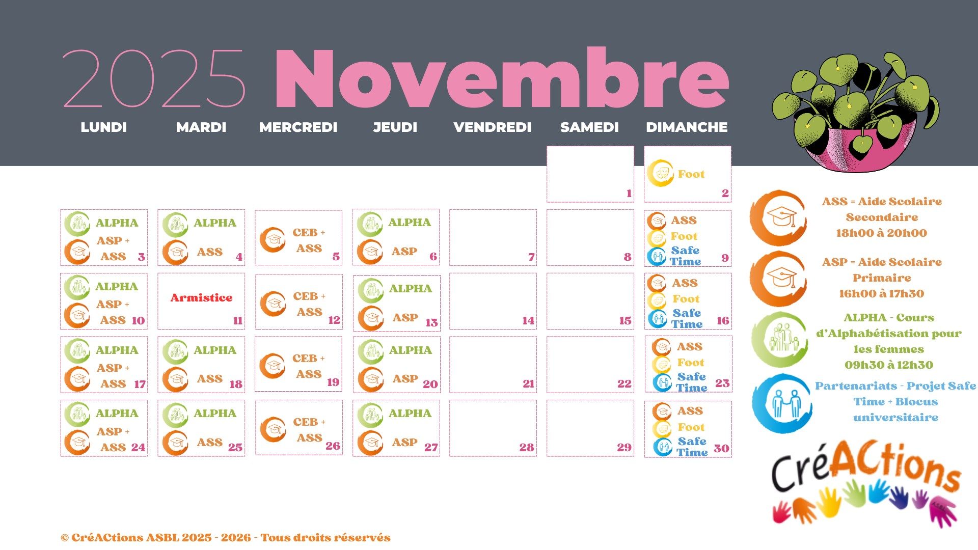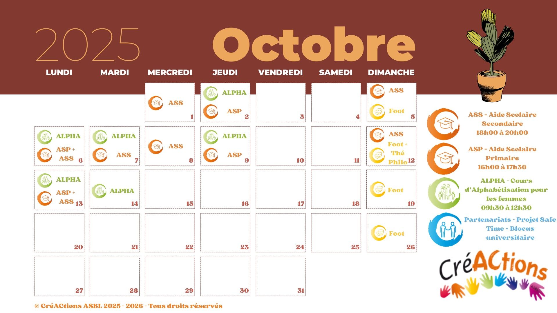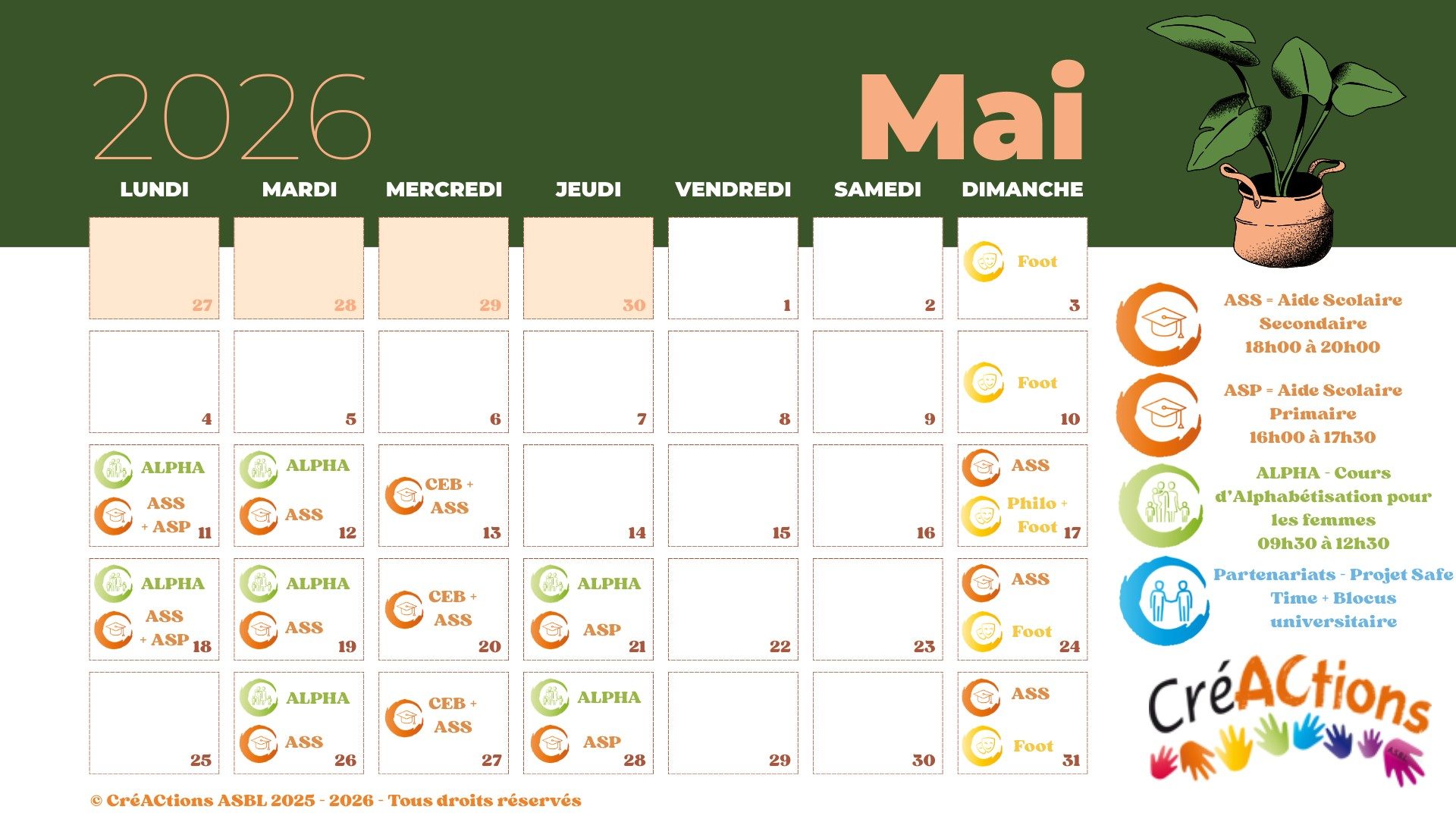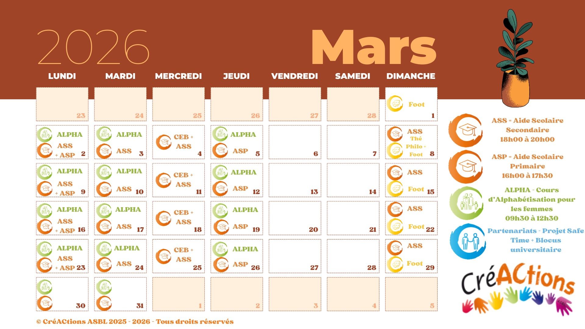- Alpha : Cours d’Alphabétisation pour les femmes.